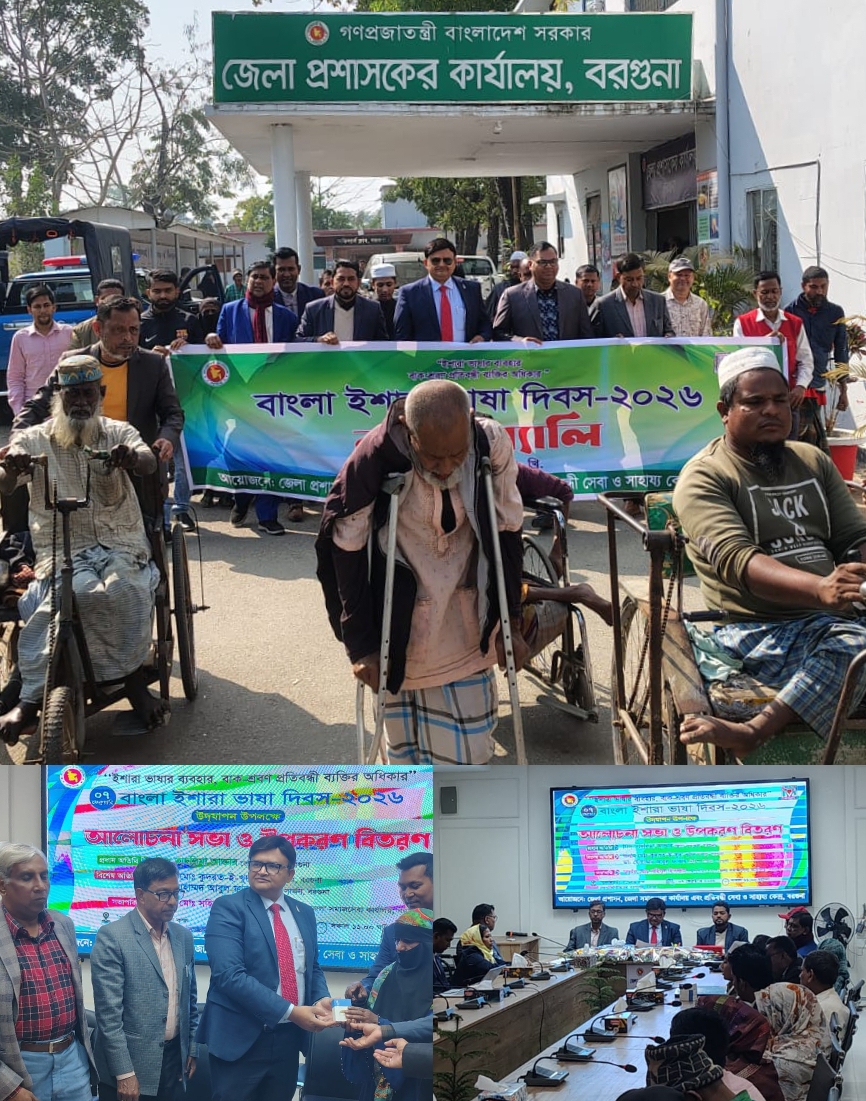 নিজস্ব প্রতিবেদক, বরগুনা: “ইশারা ভাষার ব্যবহার, বাক-শ্রবণ প্রতিবন্ধী ব্যক্তির অধিকার”—এই প্রতিপাদ্যকে সামনে রেখে বরগুনায় যথাযোগ্য মর্যাদায় বাংলা ইশারা ভাষা দিবস ২০২৬ পালিত হয়েছে। জেলা প্রশাসন ও জেলা সমাজসেবা কার্যালয়ের যৌথ…